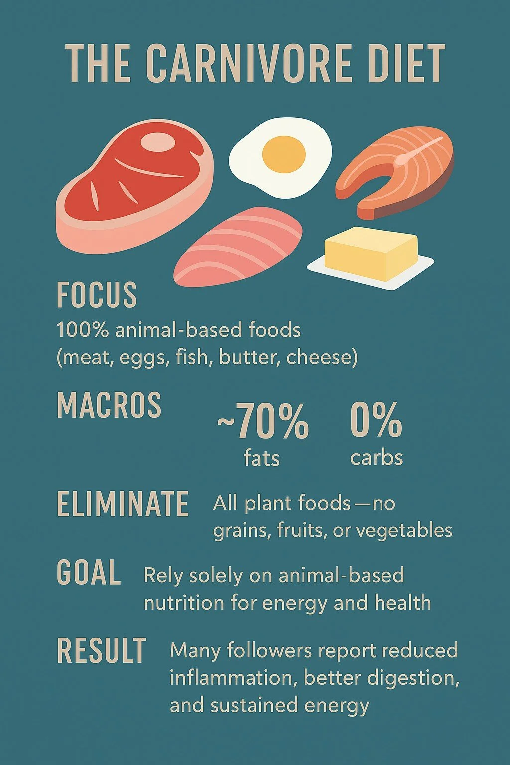 🔥 Goal: Eliminate carbohydrates entirely so your body runs on fat and protein for energy.